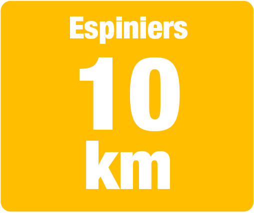 - Zones et nombre de ravitaillements : KM6.5 Point d'eau Espiniers / Arrivée